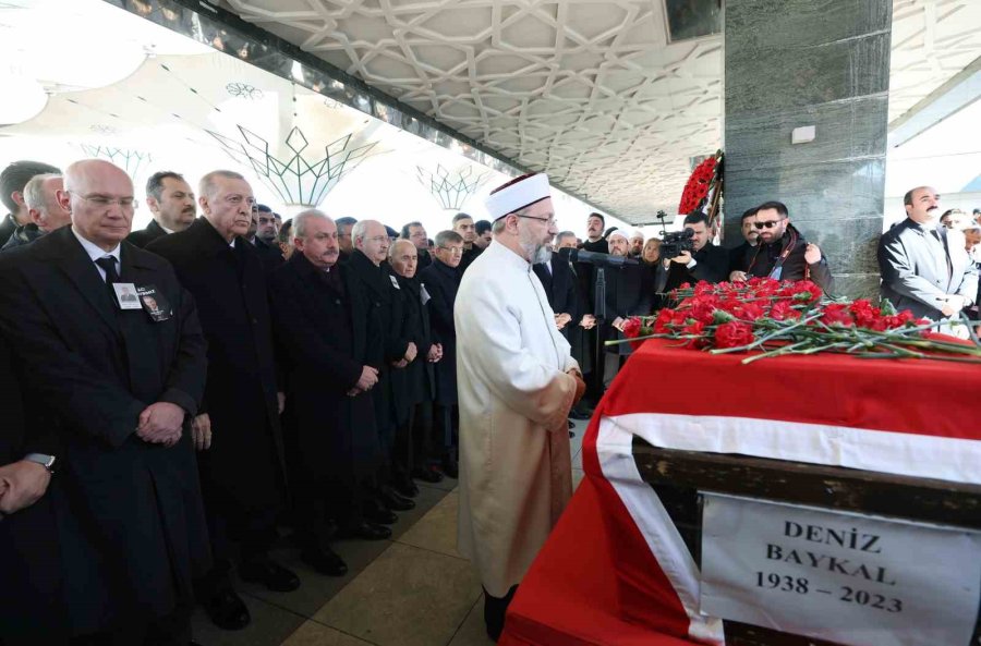 Cenaze namazına Cumhurbaşkanı Recep Tayyip Erdoğan, TBMM Başkanı Mustafa Şentop, CHP Genel Başkanı Kemal Kılıçdaroğlu, Milliyetçi Hareket Partisi Genel Başkanı Devlet Bahçeli, Büyük Birlik Partisi Genel Başkanı Mustafa Destici, Demokrat Parti Genel Başkanı Gültekin Uysal, Gelecek Partisi Genel Başkanı Ahmet Davutoğlu, Türkiye Değişim Partisi Genel Başkanı Mustafa Sarıgül, Memleket Partisi Genel Başkanı Muharrem İnce, Dışişleri Bakanı Mevlüt Çavuşoğlu'nun yanı sıra çok sayıda siyasi, aile yakınları ve sevenleri katıldı. Deniz Baykal'ın cenaze namazını, Diyanet İşleri Başkanı Ali Erbaş kıldırdı.