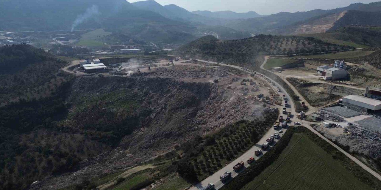 Enkaz Taşıyan Hafriyat Kamyonlarının Oluşturduğu Kuyruk Havadan Görüntülendi