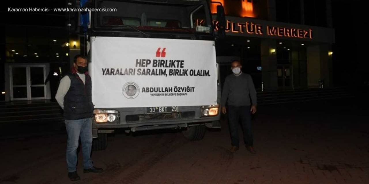 Ermenek'ten Depremzedelere Gönderilen Yardım Tırı Yola Çıktı