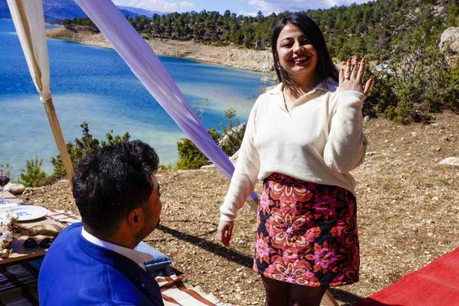 Hatay'ın Reyhanlı ilçesinde sınıf öğretmeni olan Ali Karakoç (29), 6 Şubat'ta meydana gelen ve 11 ili etkileyen depreme nişanlısı Sinem Sağlık (27) ile birlikte yakalandı. Depremin ardından Ali Karakoç memleketi Karaman'ın Ermenek ilçesine Sinem Sağlık ise memleketi Niğde'ye ailesinin yanına gitti. Hatay'dayken nişanlısına hazırlığı içerisinde olduğu evlenme teklifini yapamayan Ali Karakoç, Sinem Sağlık'ın Ermenek ilçesine ziyarete gelmesini fırsat bilerek sürpriz yapmaya karar verdi. Ali Karakoç aile arasında yapılan nişanın ardından Sinem Sağlık'a baraj gölü manzarasında sürpriz evlenme teklifi yaparak hayalini de gerçekleştirmiş oldu.