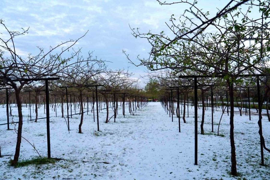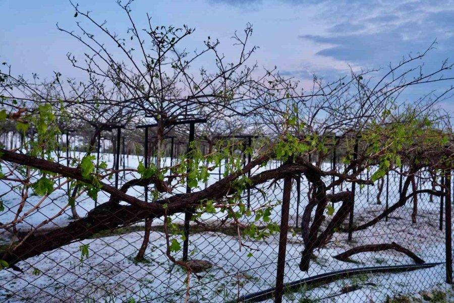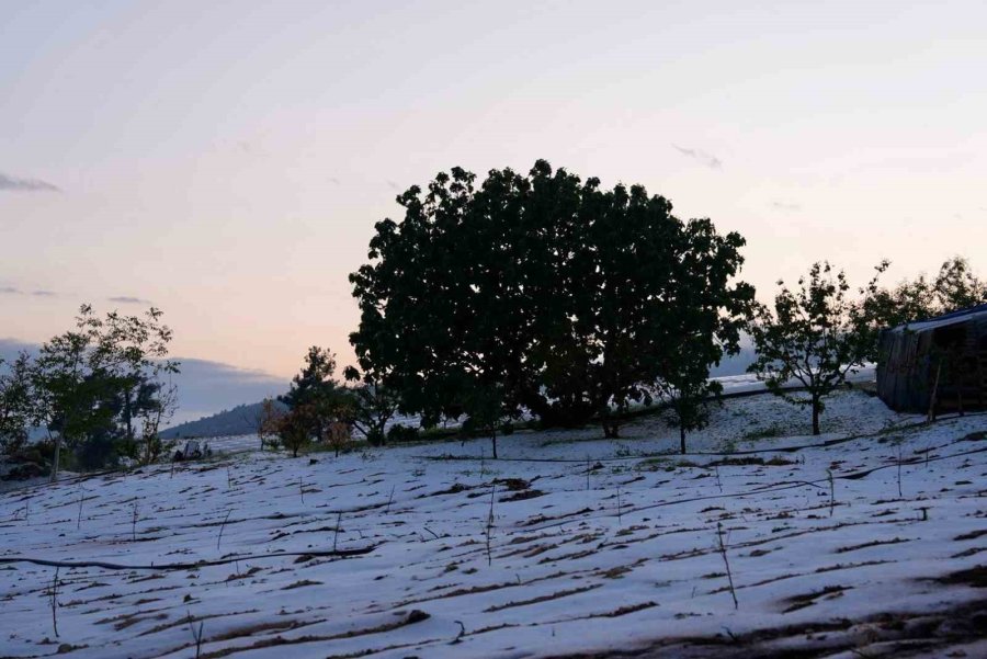 Mersin'in Erdemli ilçesinde etkili olan yağışta dev kaya yola düştü, dolu nedeniyle de birçok mahallede tarım arazileri zarar gördü.