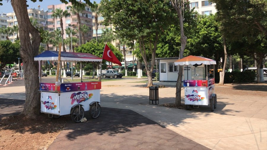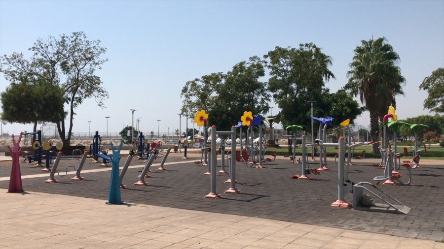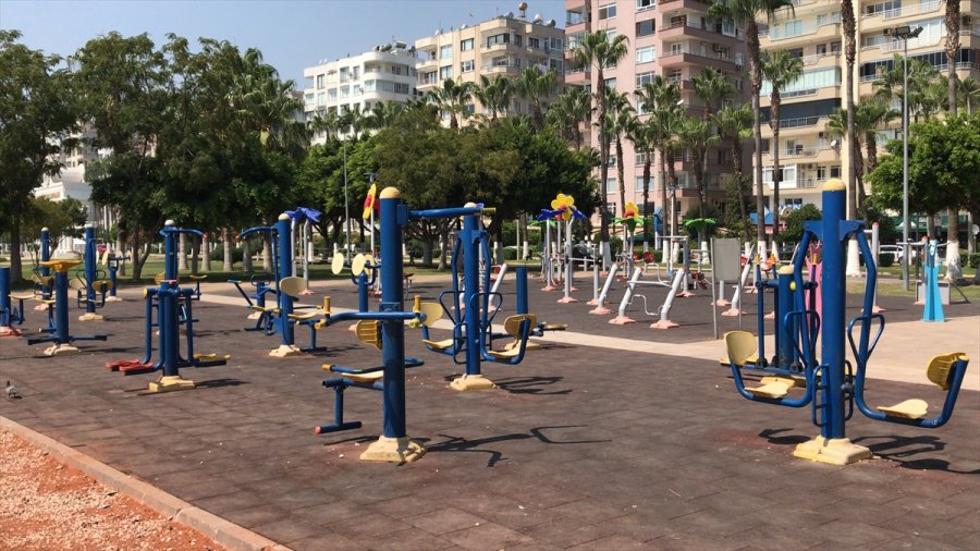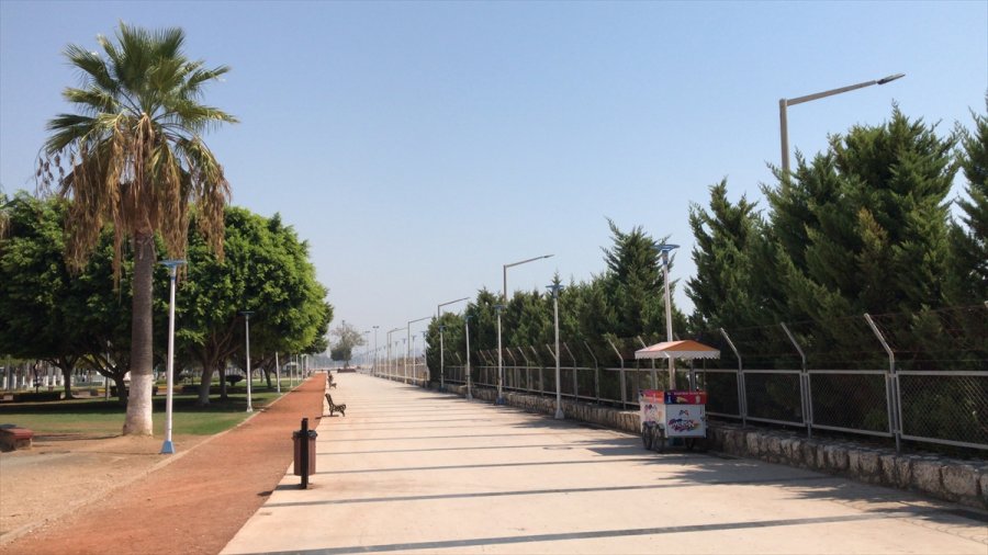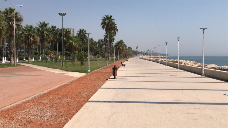 Hava sıcaklığının 36 derece olduğu Mersin'de, sahil bandı, park, bahçe, çocuk oyun alanları, teniz kortlar, spor alanları ve caddelerin boş kaldığı gözlendi.