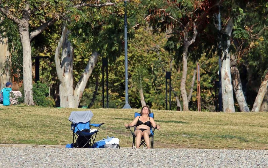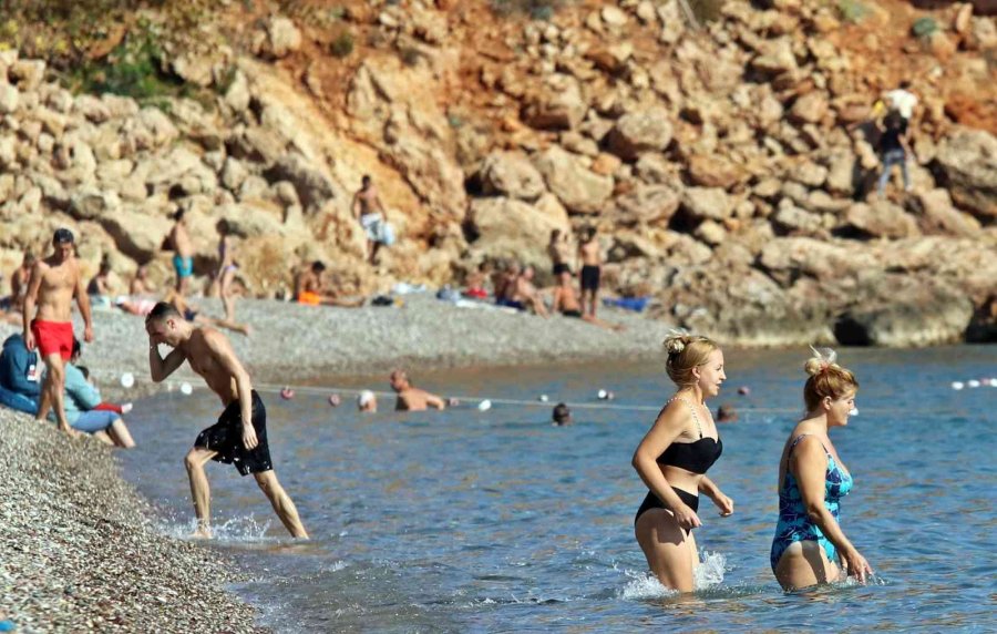 Türkiye'nin doğusunda yüksek kesimlerde kar yağışı başlarken, turizm kenti Antalya'da yazdan kalma günler yaşanıyor. Kentte hava sıcaklığı 24 dereceye kadar ulaşırken, deniz suyu sıcaklığı da havayla aynı derecede ölçüldü. İldeki nem oranıysa yüzde 23 olarak kayıtlara geçti. Güzel havayı fırsat bilen tatilciler, dünyaca ünlü Konyaaltı Sahili'ne gelerek bol bol güneşlenip, Akdeniz'in mavi sularında kulaç attı. Sahilde çoğunluğu turistlerin oluşturduğu gözlenirken, Türkiye'nin farklı illerinden gelen vatandaşlar da denizde bol bol yüzdü. Özellikle doğu illerden gelen vatandaşlar bu anları fotoğraflayıp soğuk hava dalgasına giren illerdeki hemşehrilerine atarak adeta nispet yaptı.