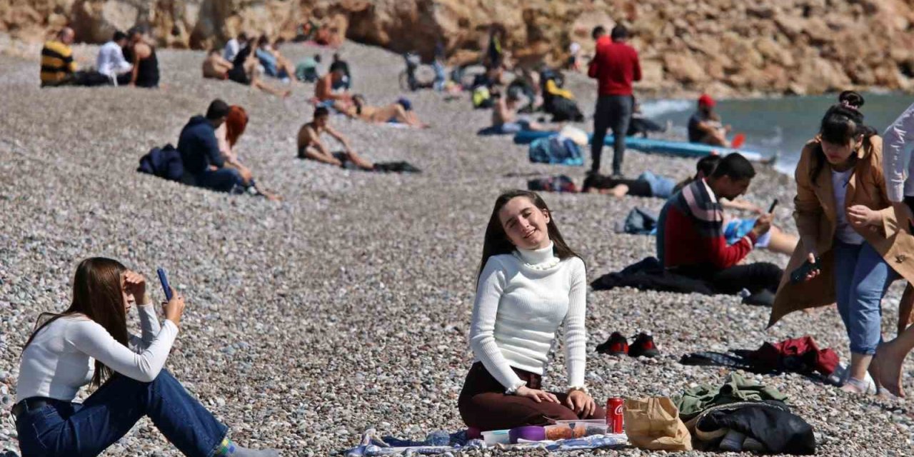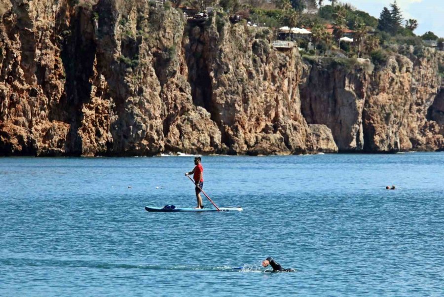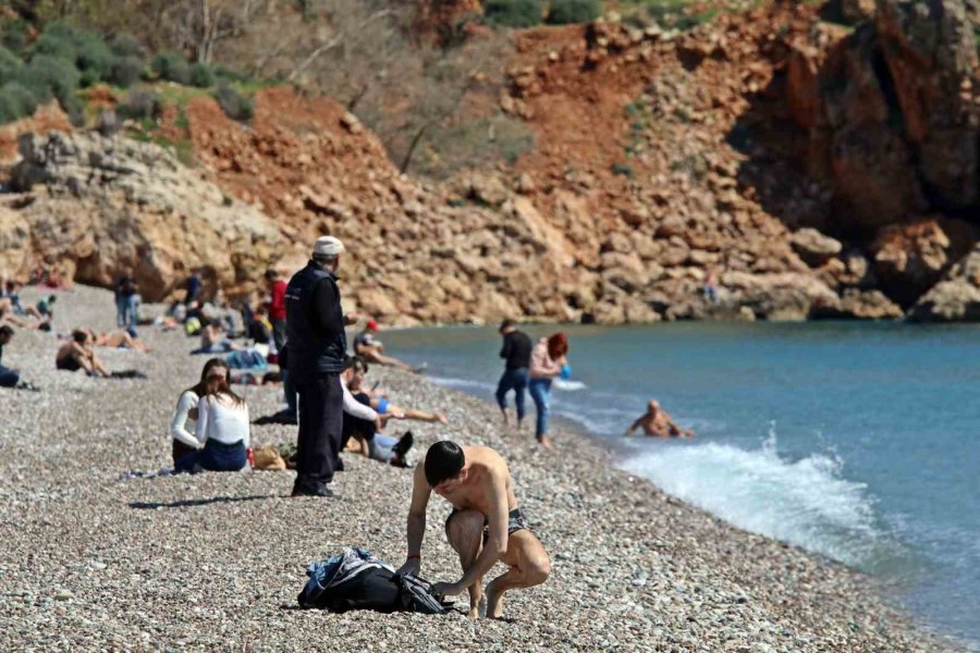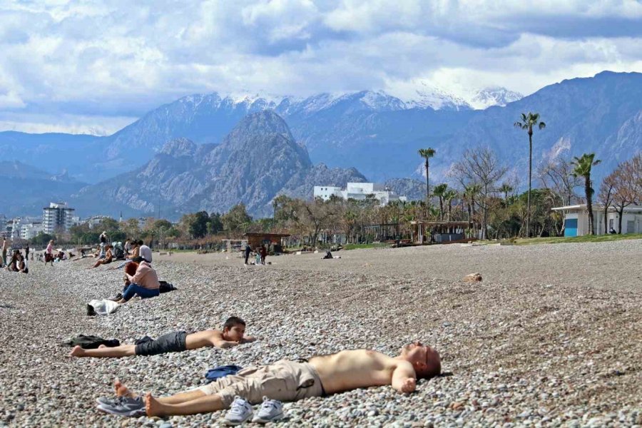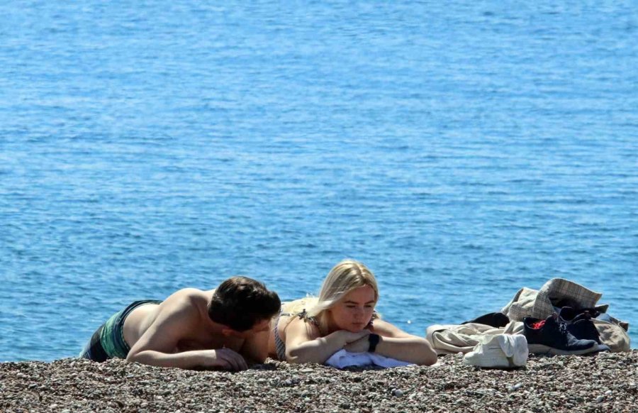 Türkiye'nin çoğu bölgesinde kar, dolu ve soğuk hava dalgası etkili olurken, Antalya'da yaz aylarını aratmayan görüntüler oluştu. Hafta sonunda yakıcı güneşi görenler, sahillere akın edip denize girdi, bol bol güneşlendi.