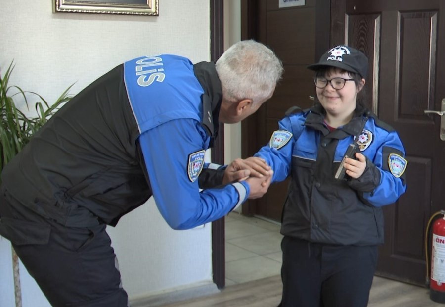 Mersin'de Down sendromlu 18 yaşındaki İnzile Çetintaş'ın polis olma hayali gerçekleşti.