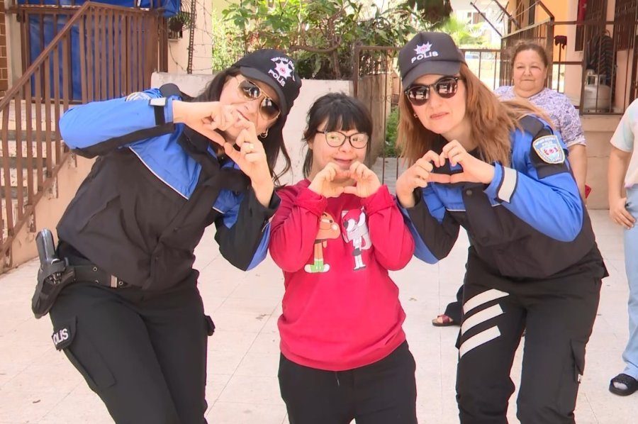 Mersin'de Down sendromlu 18 yaşındaki İnzile Çetintaş'ın polis olma hayali gerçekleşti. Polis aracıyla evden alınarak polis kıyafetleri giyen İnzile'nin heyecan dolu anları herkesi mutlu etti.