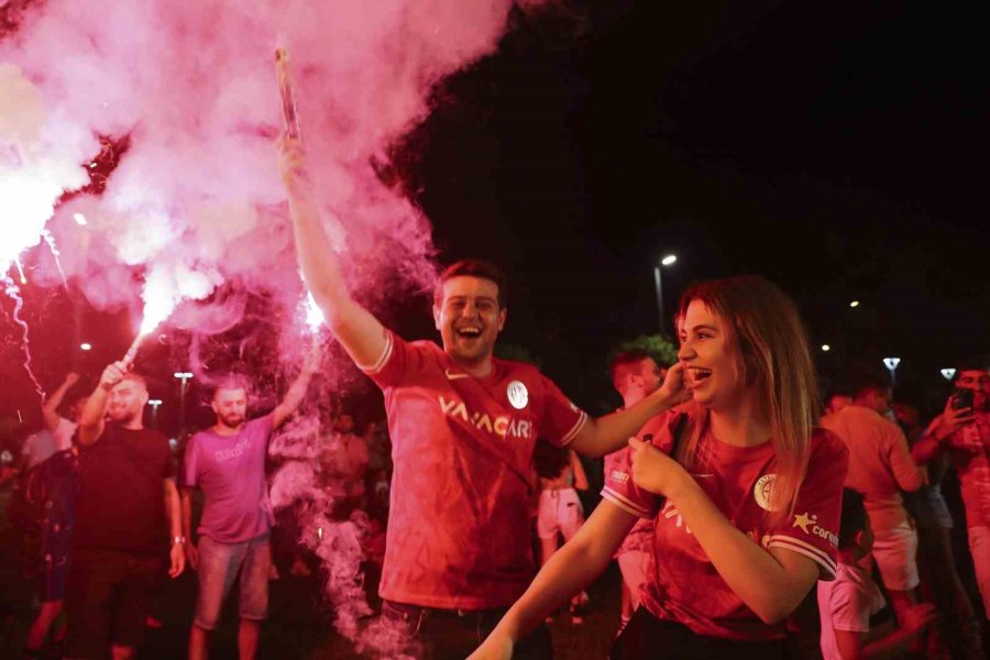 Programın sonunda ise heyecan doruk noktaya ulaştı. Boğaçayı Köprüsü etrafında toplanan taraftarlar, ellerinde meşalelerle bir görsel şölen oluşturdu. Meşaleler geceyi kırmızıya boyarken, havai fişek gösterileriyle kutlamalar devam etti. Antalya semalarında patlayan her bir fişek, taraftarların sevincini tüm şehre yaydı. Meşale, havai fişek ve ışık gösterisi drone ile de havadan görüntülendi.