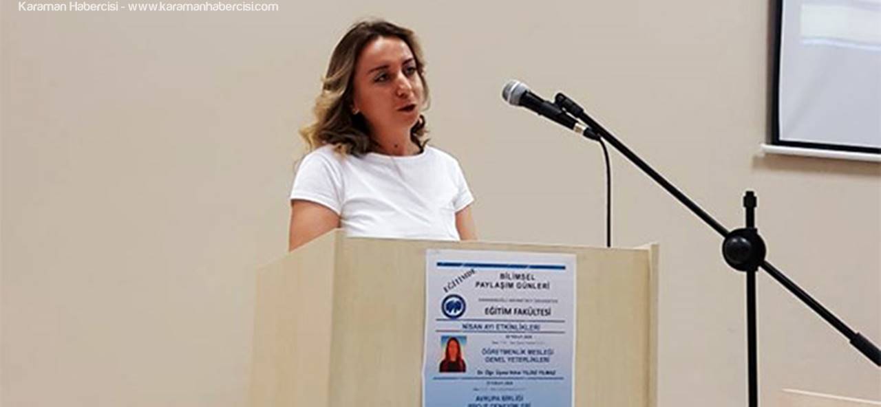 Açılış konuşmasının ardından kürsüye gelen Eğitim Fakültesi Dr. Öğr. Üyesi Nihal Yıldız Yılmaz, ‘Öğretmenlik Mesleği Genel Yeterlikleri’ konulu sunumunu yaptı. Yılmaz, sunumu ile Türkiye’de öğretmenlik mesleğine verilen değer, öğretmenlerin toplumsal statüsü, öğretmen olmanın önemi ve öğretmenlik mesleği için gerekli olan mesleki bilgi, beceri, tutum ve değerlere ilişkin yeterlilikler hakkında bilgiler aktardı.