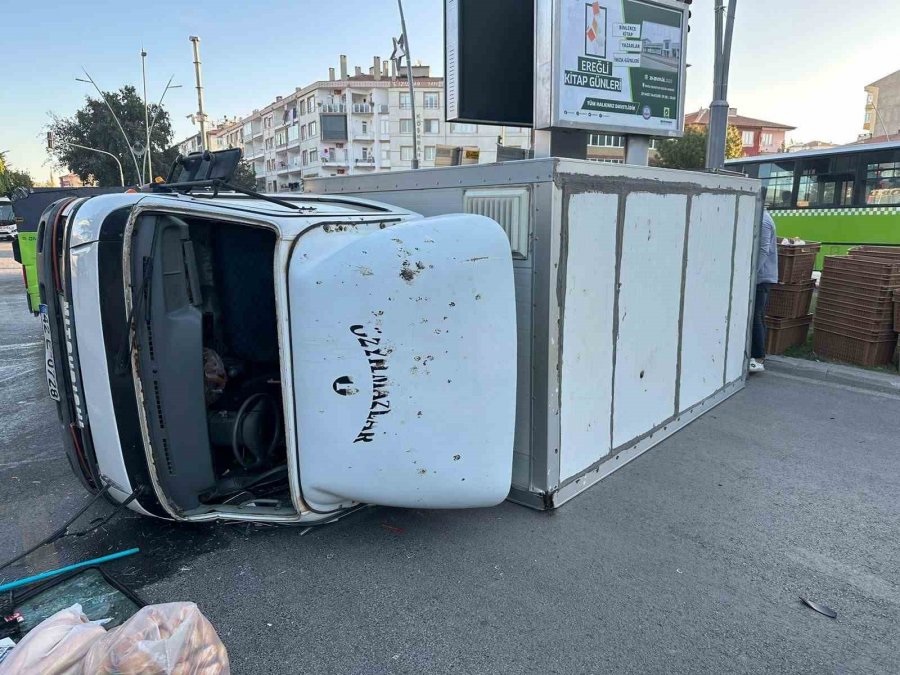Kaza, saat 06.45 sıralarında Ereğli ilçesi Namık Kemal Mahallesi Atatürk Caddesi üzeri Anıt Kavşağı'nda meydana geldi. Edinilen bilgiye göre, A.D.'nin kullandığı 27 AAY 783 plakalı ekmek servis aracı ile İ.B.'nin kullandığı 42 E 0728 plakalı ekmek servis aracı çarpıştı. Kazada İ.B. yaralandı. Vatandaşların ihbarı üzerine olay yerine sağlık ve polis ekipleri sevk edildi. Yaralı sürücü olay yerindeki ilk müdahalesinin ardından ambulansla Ereğli Devlet Hastanesine kaldırılarak tedavi altına alındı.