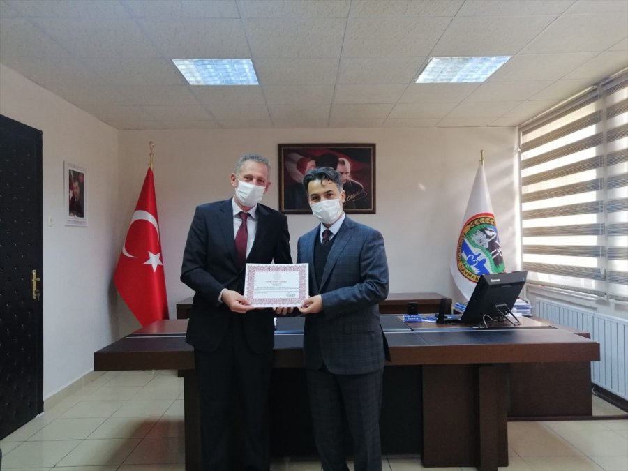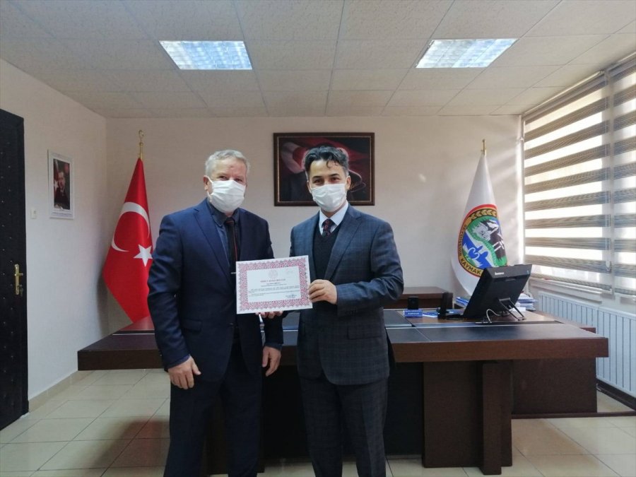 Kaymakamlıkta yeni tip koronavirüs (Kovid-19) tedbirleri kapsamında düzenlenen programa, Erdoğan ile İlçe Milli Eğitim Müdürü Tahir Kibar ve emekliye ayrılan öğretmenler katıldı.