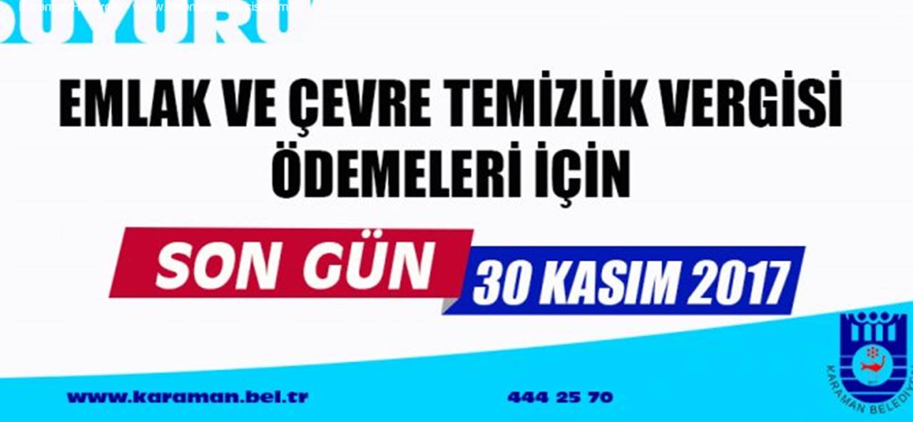 Emlak ve Çevre Temizlik Vergisi’nin ikinci taksitleri için ödeme süresi 30 Kasım Perşembe günü sona eriyor.