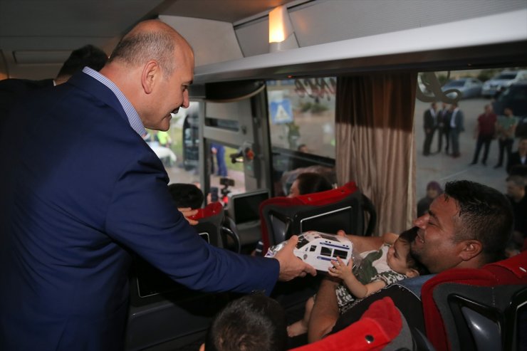 Ekipler tarafından kontrol amacıyla durdurulan araçlarda bulunan vatandaşlarla bayramlaşan Soylu, araçlardaki çocuklara oyuncak ve broşür verdi.