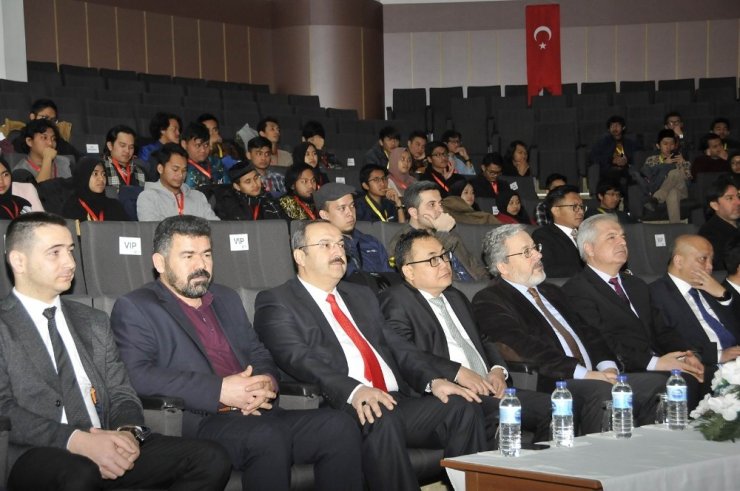 "Her ne kadar tenlerimizin renklerinde farklılıklar olsa da, yüreğimiz bir, davamız bir, özümüz bir, sözümüz bir, kökümüz bir, yükümüz bir. Bundan dolayıdır ki damarda akan kanımız bir, canımız bir, cananımız bir, derdimiz bir. Hazreti Mevlana'nın kentine, bilhassa dışarıdan gelen misafirlerimiz için, barış, hoşgörü kentine hepiniz hoş geldiniz. Tabii Konya'ya gelmişken Hazreti Mevlana'dan bahsetmeden olmaz. Ama biz Hazreti Mevlana'yı bir kısım insanların, "Dinler üstü bir adam" gibi adlandırdığı değil, "Ben yaşadığım sürece Kur'an'ın kölesiyim. Övülmüş yüceltilmiş Peygamberin ayağının tozuyum. Her kim ki benden bundan başka bir şey aktarırsa, o sözden de sözü söyleyenden de davacıyım." diyen kendisini Kuran'dan ve sünnetten ayrı görmeyen ve onun kölesi olduğunu ifade eden bir Allah dostu olarak görüyoruz" dedi. Rektör Yardımcısı Prof. Dr. Karabulut, konuşmasının ardından Hazreti Mevlana'yla ilgili kendi yazdığı "Gel'şiirini okudu.