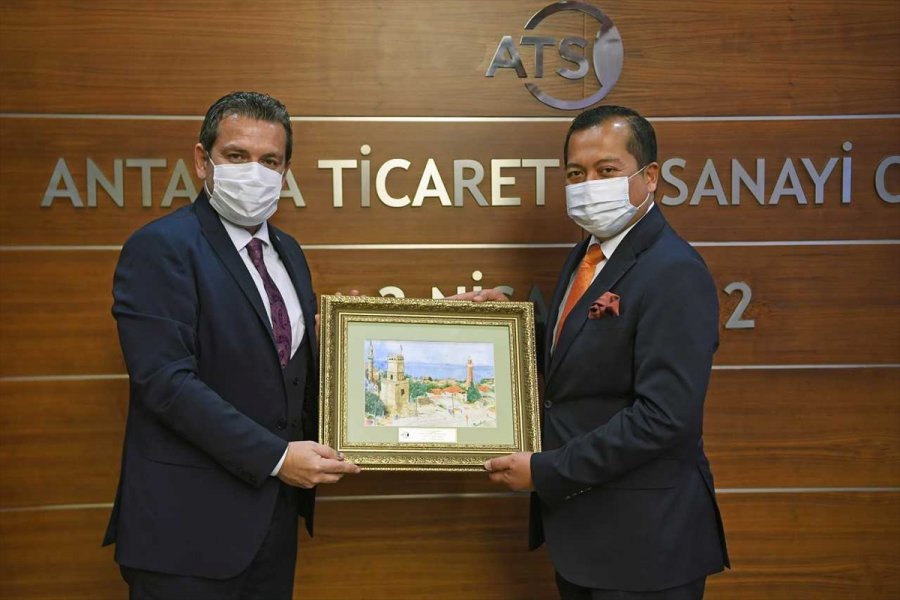 Endonezya'nın Ankara Büyükelçisi Lalu Muhammed İkbal, Antalya Ticaret ve Sanayi Odası (ATSO) Yönetim Kurulu Başkan Yardımcısı Mustafa Atılgan'ı ziyaret etti.