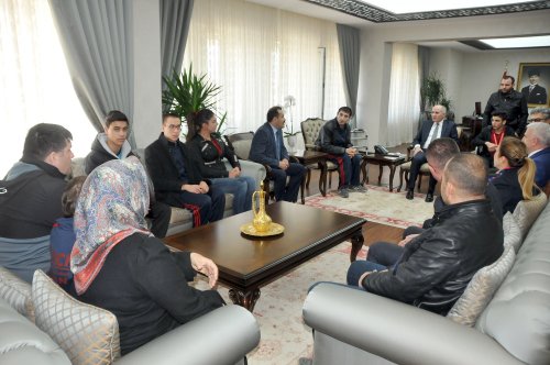 12 Aralık 2017 Salı günü gerçekleşen başarılı sporcuların ziyaretinde; İl Milli Eğitim Müdürü Mevlüt Kuntoğlu, Gençlik Hizmetleri ve Spor İl Müdürü Hayati Kısacık ve Kent Konseyi Başkanı Ali Konukseven yer aldı.