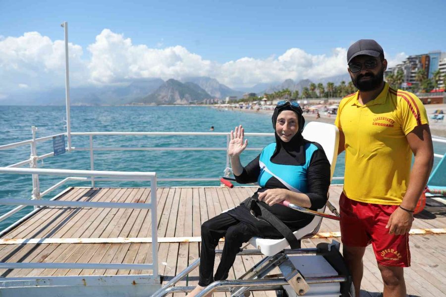 Antalya'da yaşayan ya da şehir dışından tatil için kente gelen engelli vatandaşların rahatlıkla denize girebileceği Büyükşehir Belediyesi Engelsiz Plajı, sıcak yaz günlerinde misafirlerini ağırlamaya devam ediyor.