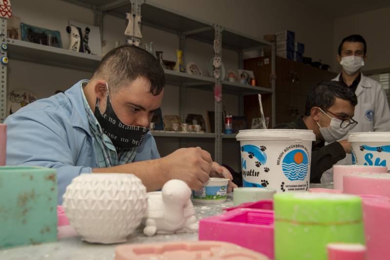 Merkez’de 10 özel gereksinimli çocuğa verilen seramik kursunda eğitmen olarak görev yapan Mürsel Yılmaz, “Amacımız burada özel gereksinimli çocukların gelişimine katkı sunarak onların sosyal hayata ve iş yaşamına katılmalarını sağlamak. Buraya gelen özel gereksinimli bireyler, arkadaş çevresi oluşturarak da sosyal hayata güzel bir katılım sağlıyor” dedi.