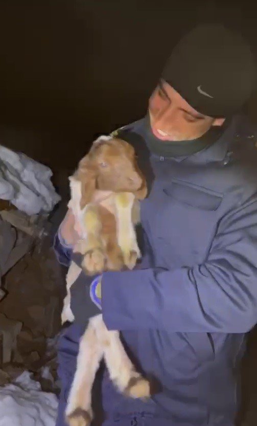 Kahramanmaraş'ın Nurhak ilçesinde yapılan arama kurtarma çalışmalarında yıkılan ahır enkazında kalan 15 küçükbaş hayvan canlı olarak kurtarıldı.