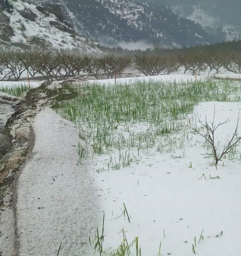 Erdemli’de Dolu, Tarım Alanlarına Zarar Verdi