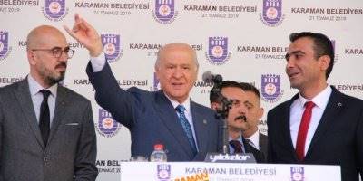 Bu kapsamda bugün Karaman'da bulunduklarını belirten Bahçeli, Büyükkarcı'ya her konuda kefil olduklarını söyledi.