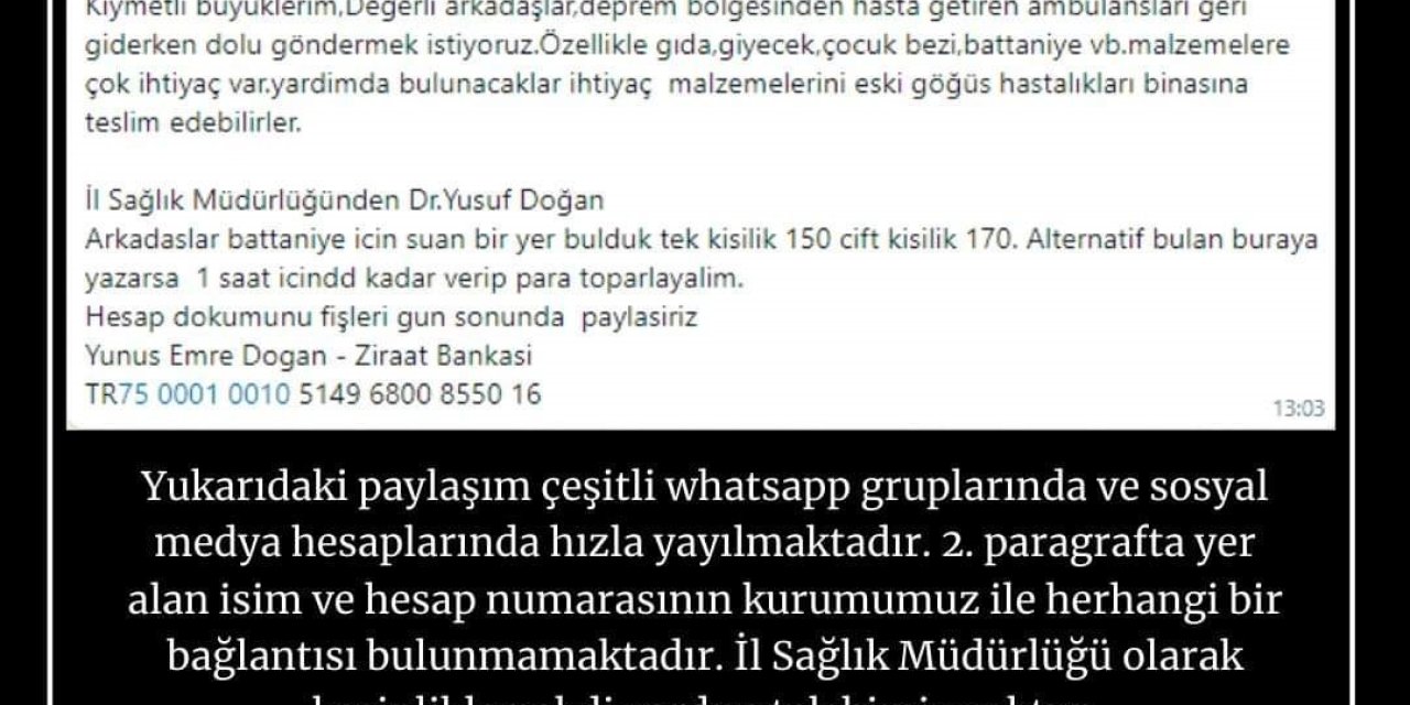 Ereğli Kaymakamı Edip Çakıcı, "Öncelikli olarak yaşadığımız bu iki deprem Türkiye Cumhuriyeti'nin yaşadığı en büyük afetlerden birisi, çok sayıda vatandaşımız vefat etti, çok sayıda vatandaşımız enkaz altında, vefat eden vatandaşlarımıza Allah'tan rahmet diliyorum, milletimizin ve yakınlarının başı sağ olsun. Dün bende Hatay'a gittim, orada yerinde gördüm canhıraş bir mücadele var devletimizin, vatandaşımızın büyük katkılarıyla, gerçekten orada her şeye ihtiyaç var. Afetin, depremin oluşmasının ilk anından itibaren Kaymakamlık Kriz Merkezini kurduk ve çalışmalara başladık. Belediyemiz sağ olsun, ilk etapta 50'in üzerinde arama kurtarma ekibini yola çıkardık. Ardından iş makinelerimiz gerek Kamu Kurumlarından olsun gerek belediyemizden olsun, vatandaşlarımızın sağladığı yardımlar (battaniye, kuru gıda, su vs.) şimdi konteynırlarımız da yola çıkacak. Gerçekten milletimiz tek bir yürek gibi atıyor. Ereğlili hemşerilerimize, iş adamlarımıza, belediyemize özellikle çok teşekkür ediyorum, her konuda destek oluyorlar. Millet olarak el birliği içerisinde bu afetin de altından kalkacağız inşallah. Enkaz altındaki vatandaşlarımızın inşallah bir an önce sağ, salim olarak çıkarılmasını temenni ediyorum. Bir de vatandaşlarımızdan ricamız hiç kimse bireysel olarak Hatay'a gitmesin. Bütün yardım organizasyonu valiliğimiz koordinasyonuyla kaymakamlığımız ve belediyemiz iş birliği ile yapılıyor. Yardım malzemeleri Belediye Kültür Merkezine getirilirse buradan sevk edeceğiz. Yine kaymakamlığımızın, valiliğimizin haberi dışında vatandaşlarımız oraya bireysel olarak gitmesinler çünkü oraya gidişler de sınırlandırıldı. Arama kurtarma ekiplerine hala ihtiyaç var, bu konuda tecrübesi olanlar varsa, kaymakamlığımıza başvurursa onları da organize edeceğiz, bir an önce deprem bölgesine ulaştırma gayreti içerisinde olacağız. Tekrar bu felakette hayatını kaybeden vatandaşlarımıza Allah'tan rahmet diliyorum, milletimizin başı sağ olsun, Allah yardımcımız olsun" şeklinde konuştu.