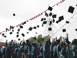 Diploma töreninin ardından öğrenciler hep birlikte keplerini havaya fırlatarak mezuniyet sevinci yaşadı.