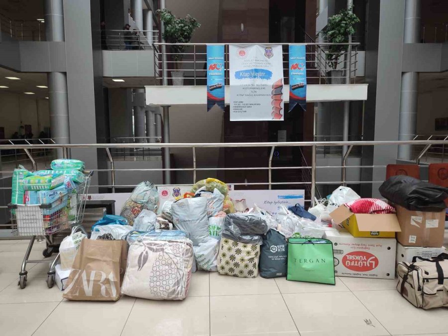 Kahramanmaraş merkezli gerçekleşen depremlerdeki afetzedeler için Eskişehir Adliyesi'nde, Türk Kızılayı Eskişehir Şubesi koordinasyonunda ayni ve nakdi yardım masaları oluşturuldu.