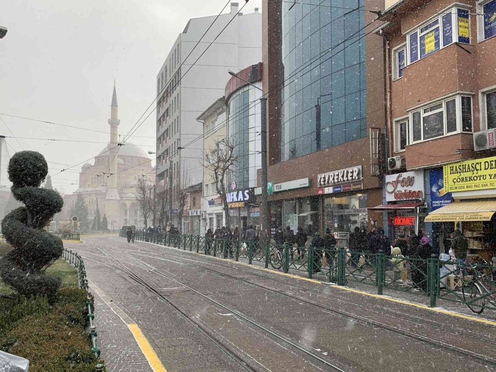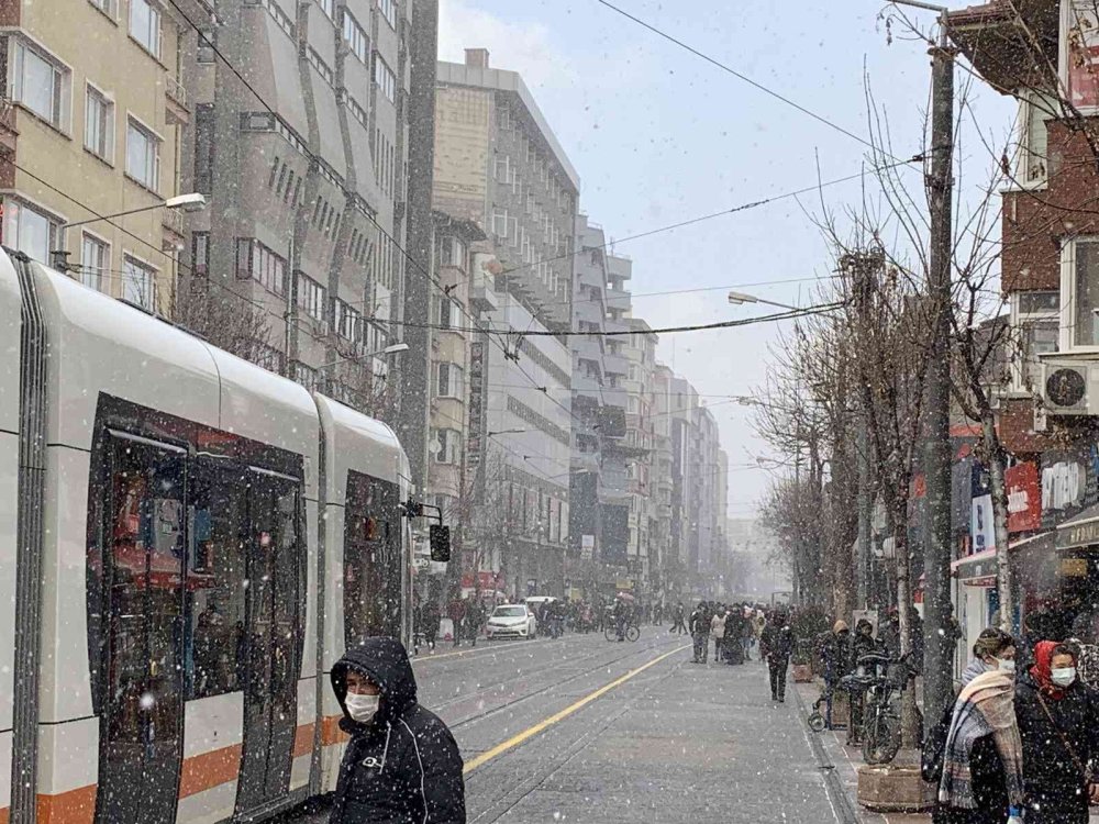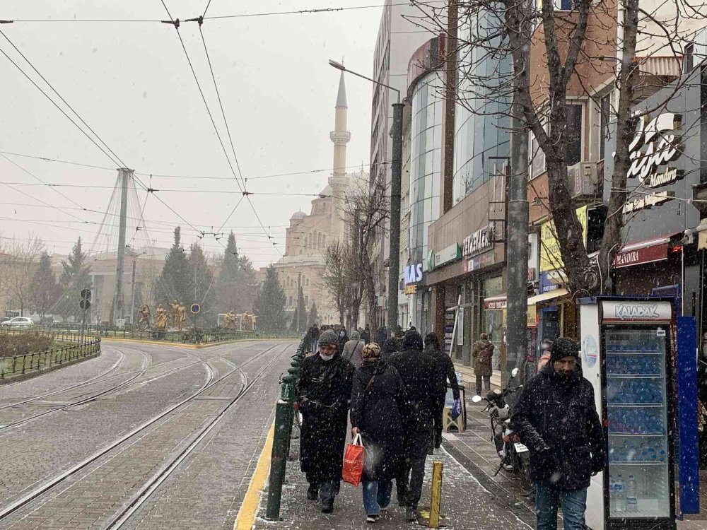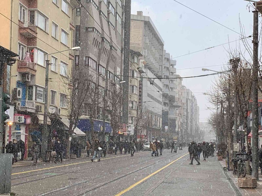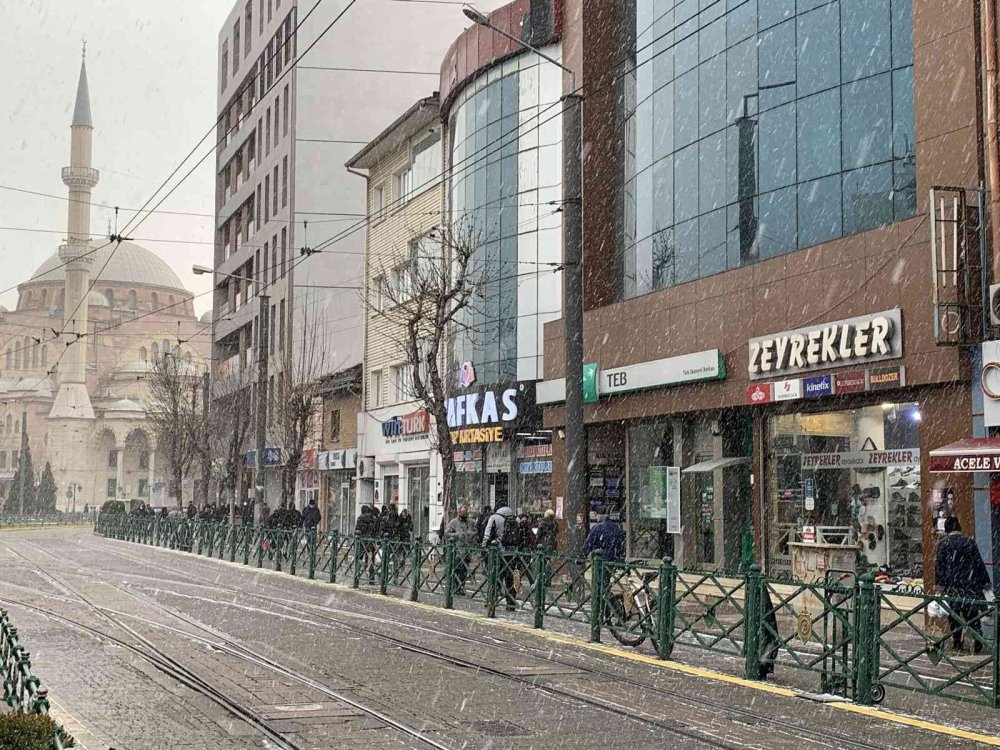 Eskişehir'de öğle saatlerinde başlayan kar yağışı aralıklarla devam ediyor.