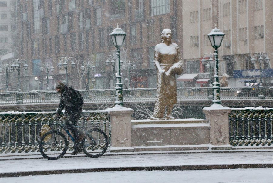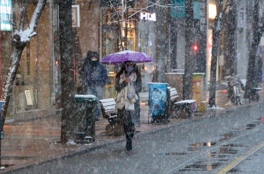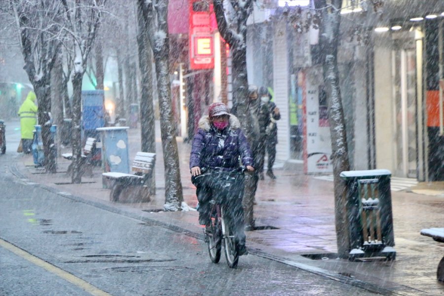 Hava sıcaklığının en yüksek sıfır, en düşük sıfırın altında 5 derece olarak ölçüldüğü kentte, kar yağışıyla sokak ve caddeler ile parklar beyaz örtüyle kaplandı.