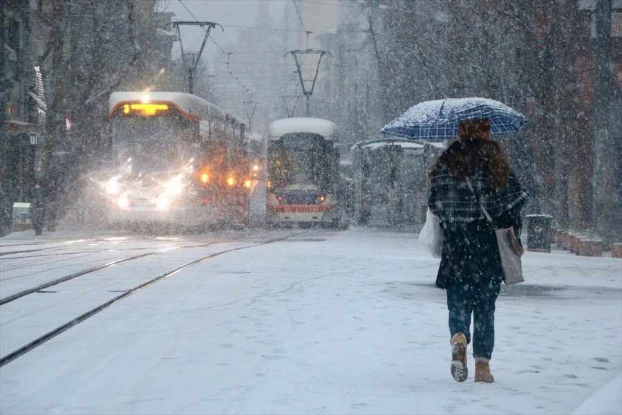 Eskişehir'de etkili olan kar yağışı kenti beyaza bürüdü.