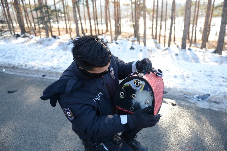 Eskişehir'de Kaza Yapan Araçta Ürken Kediyi Polis Sakinleştirdi