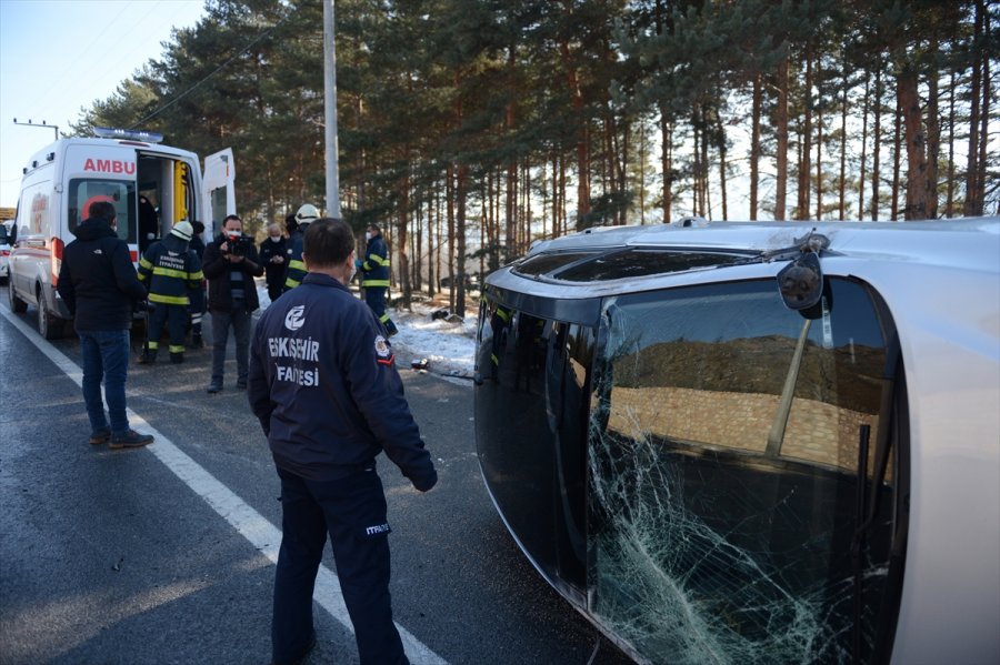 Eskişehir'de otomobil elektrik direğine çarparak devrildi.