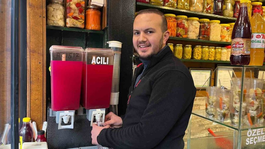 "Şu günler turşu sezonu. Eylül ayında yoğunluk başlıyor ve Mayıs ayına kadar devam ediyor. Şu anda da havaların soğuk olmasından dolayı vatandaşın turşuya ve turşu suyuna büyük talebi var. Grip gibi hastalıktan korunmak isteyenler turşuya ve turşu suyuna rağbet gösteriyor. Satışlarımızda normal zamana göre yüzde 70 gibi bir artış var. Turşu suyunu özellikle şişelerle alıp evine götürüyor. Evde ailecek turşu suyu içiyorlar. Bardakla turşu suyu alıp içen kişi sayısı da arttı. Günde yaklaşık 300 bardak turşu suyu satıyoruz."