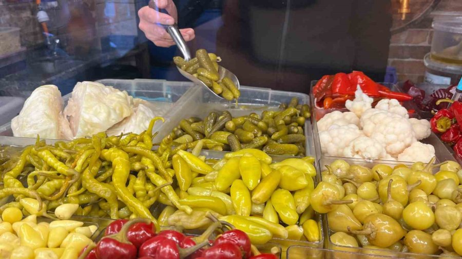 Kış aylarında soğuk havanın etkisini göstermesiyle grip, nezle, soğuk algınlığı gibi hastalıklar da yayılıyor. Hastalıklardan korunmak isteyen vatandaşlar ise doğal şifa kaynağı olan turşuya ve turşu suyuna yoğun talep gösteriyor. Eskişehir'de turşu satışı yapan Güray Atalay, "Grip gibi hastalıktan korunmak isteyenler turşuya ve turşu suyuna rağbet gösteriyor" dedi.