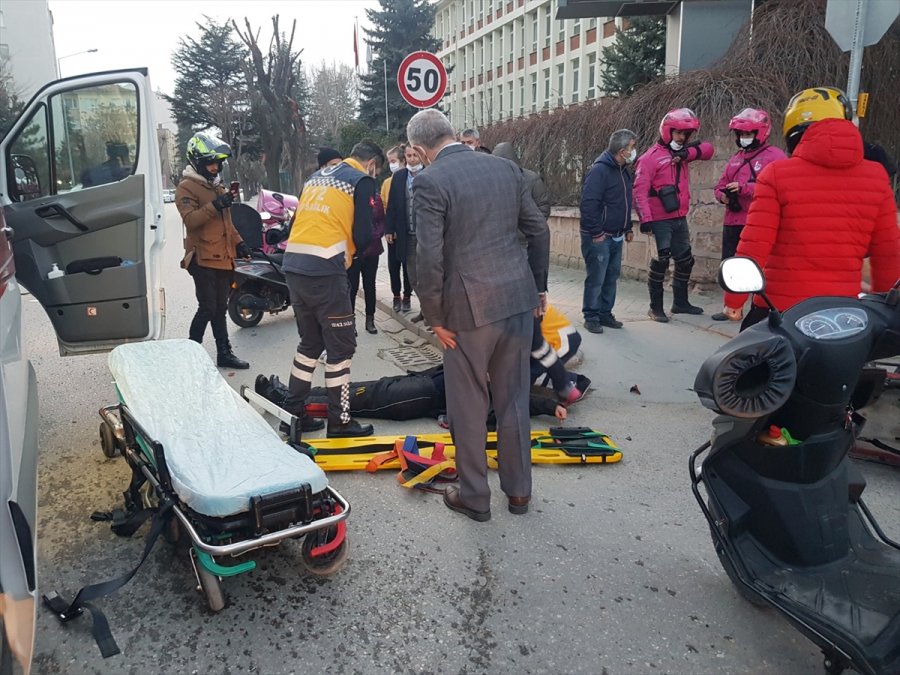 Bir gıda firmasında kurye olarak çalışan Aydan Ç'nin (31) kullandığı 09 ACS 835 plakalı motosiklet, Odunpazarı ilçesi Kırmızıtoprak Mahallesi Yıldız Sokağı'nda N.S. idaresindeki 26 GR 485 plakalı panelvan araca çarptı.