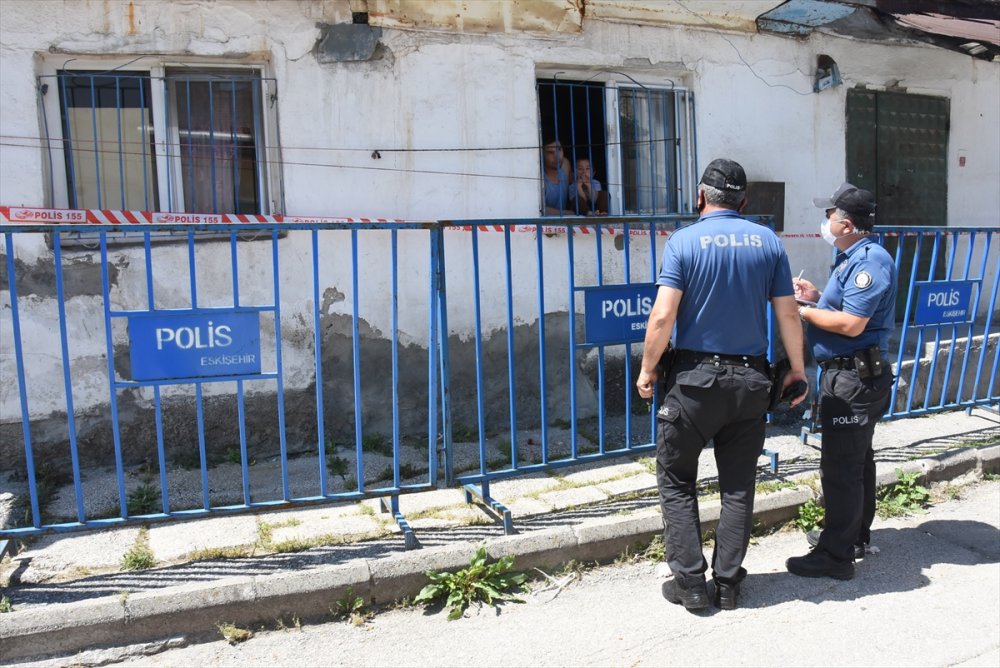 Eskişehir Emniyet Müdürlüğü ekipleri, karantinaya alınan evlerin girişlerini demir bariyer ve güvenlik şeridi ile kapattı.