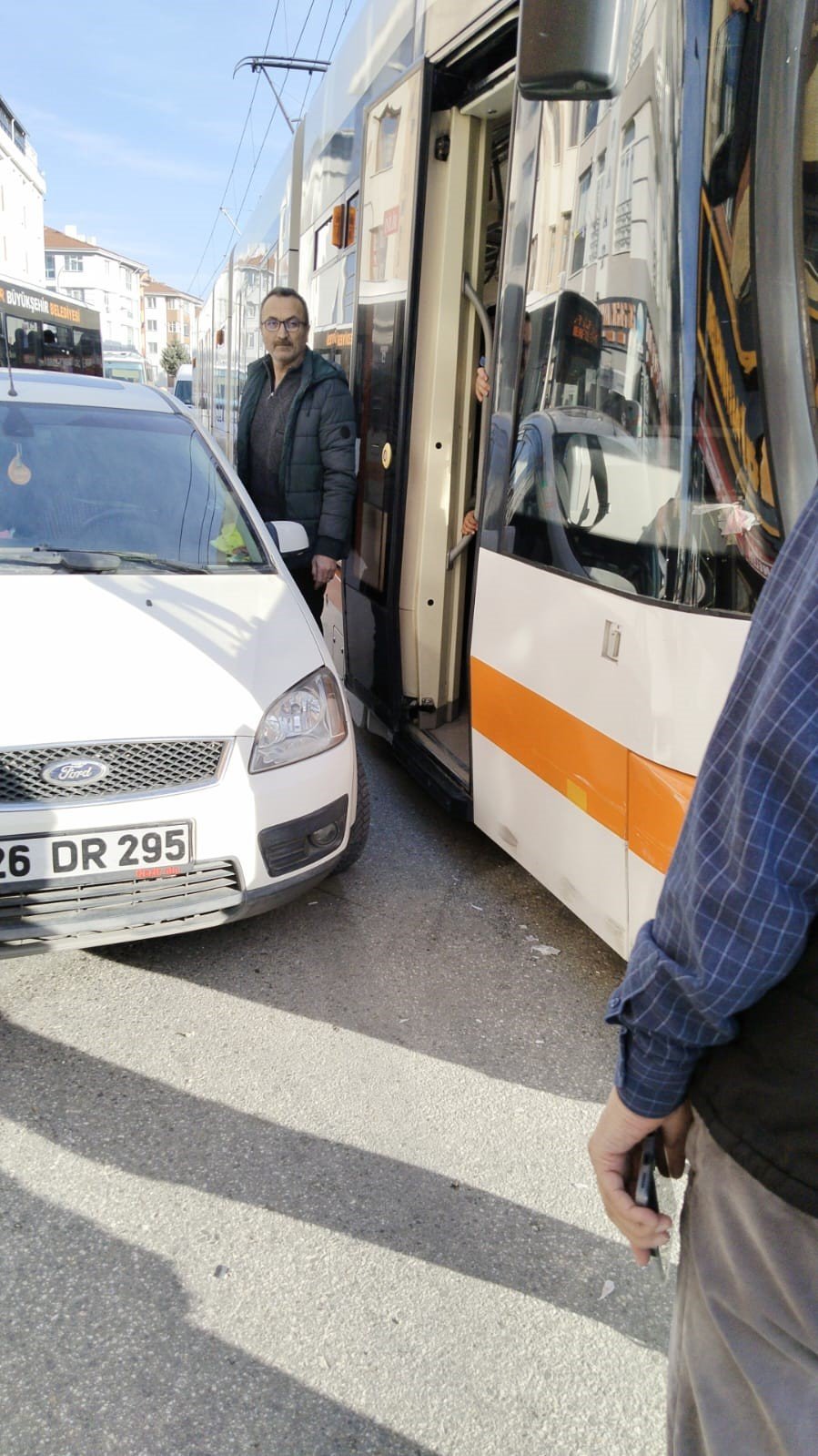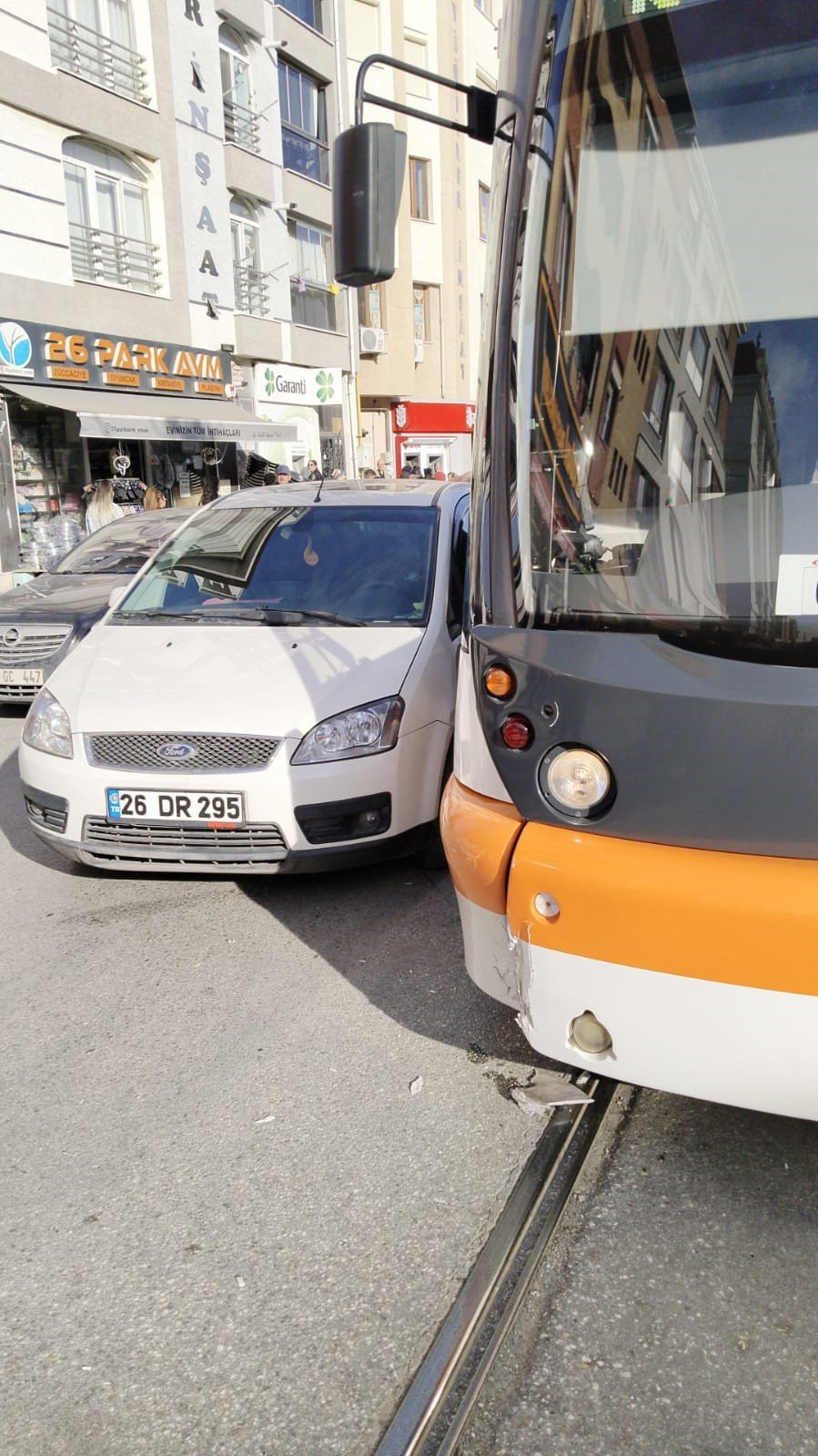 Eskişehir'de, bir otomobilin tramvaya çarpması sonucu seferlerde kısa süreli aksama oldu.
