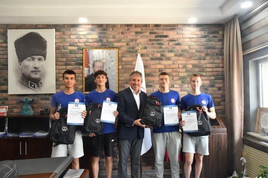 Eskişehir İl Spor Müdürü Abdulselam Er, Eskişehirli yüzücüler ile bir araya gelerek tebrik etti.