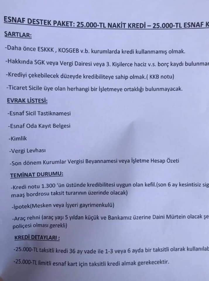 Duyururken herkese kredi verilecekmiş gibi duyurup hiç bir şarttan bahsetmiyorlar, esnaf bankaya gidince yerine getiremeyeceği şartlarla karşılaşıyor...