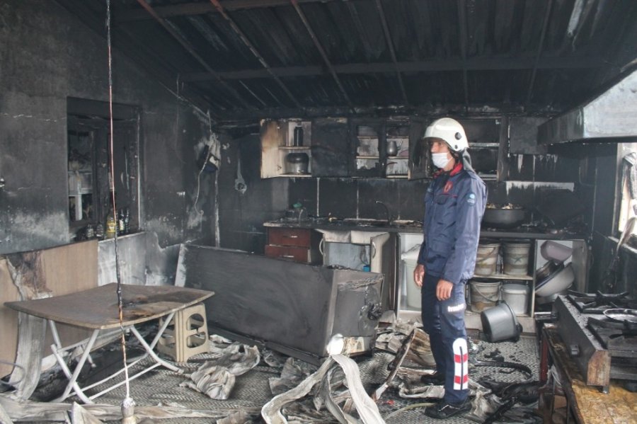 Yangın bu sabah saat 08.00 sıralarında Halil Çelik'e ait iş yerinde başladı. İşçilerin dinlendiği alanda meydana geldi. İşçilerin çalıştığı esnada meydana gelen yangında tutuşan süngerler bir anda alev topuna döndü. İş yerindeki hortumla yangına ilk müdahaleyi yapan işçilerin ihbarı üzerine olay yerine Antalya Büyükşehir belediyesi itfaiye ekipleri sevk edildi. Yaklaşık 1 saat süren söndürme çalışması sonrası yangın başka iş yerlerine sıçramadan söndürüldü. Çıkış sebebi henüz tespit edilemeyen yangın sonrası üst kattaki dinlenme odası küle döndü. Eşyaları yanan işçiler, yangın sonrası göz yaşlarını tutamadı. Polis olayla ilgili soruşturma başlattı.