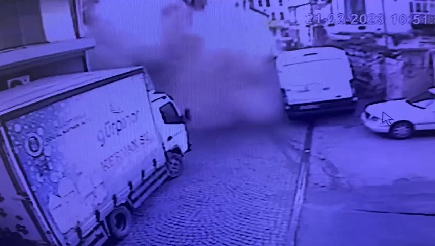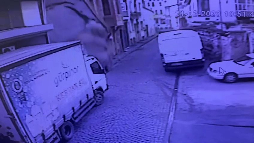 Fatih'te 2 katlı metruk binanın boş alana çöktüğü anlar güvenlik kamerasına yansıdı. Görüntülerde, çökmeyle birlikte etrafı toz bulutunun kapladığı anlar yer aldı.