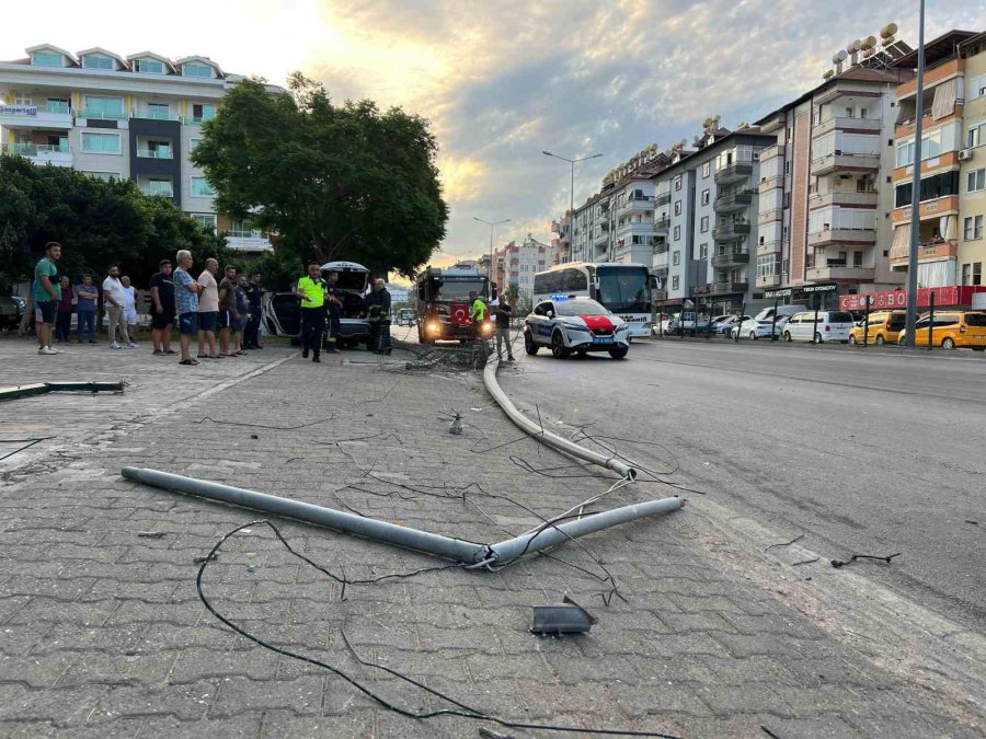 Antalya'nın Alanya ilçesinde aşırı hız yapan sürücünün kontrolünden çıkan otomobil, önce ticari taksiye ardından refüjdeki aydınlatma direğine...