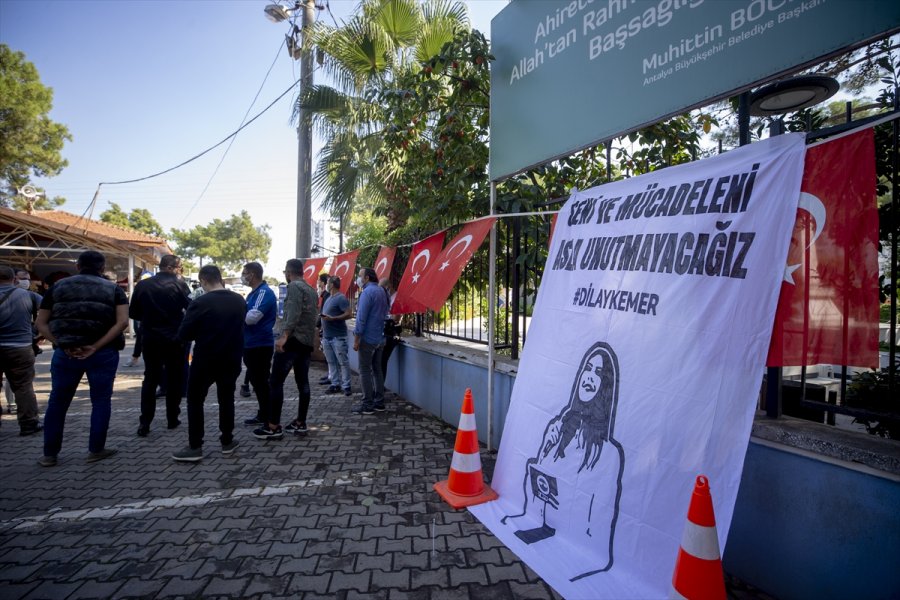 Bu arada bir grup Fenerbahçe taraftarı, mezarlığın demir korkuluklarına, "Seni ve mücadeleni asla unutmayacağız Dilay Kemer" yazılı pankart astı.