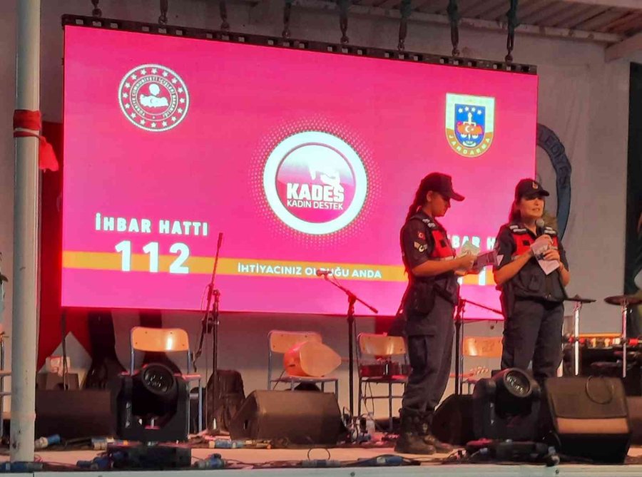 Aksaray'da kadına yönelik şiddetin önlenmesi amacıyla çeşitli faaliyetler yürüten jandarma ekipleri, Saratlı beldesinde düzenlenen festivalde sahneye çıkarak yaklaşık 2 bin kişiye Kadın Destek Uygulaması (KADES) eğitimi verdi.