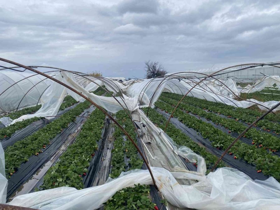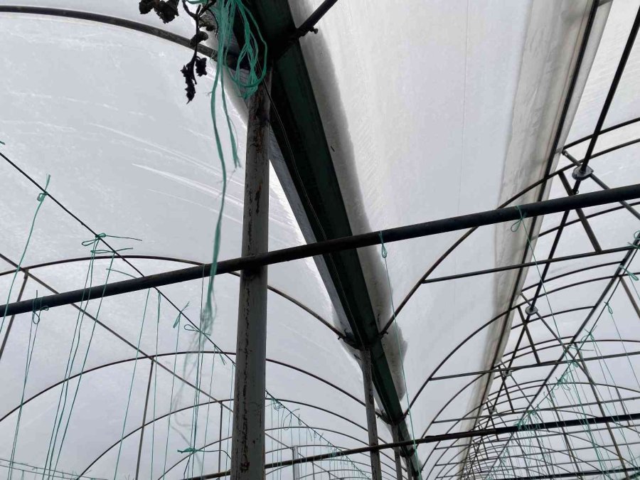 Antalya'da dün gece etkili olan fırtına ve dolu yağışı; seraların plastik örtülerini yırttı, demirlerini uçurdu.