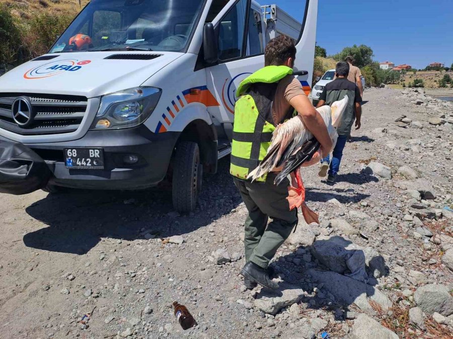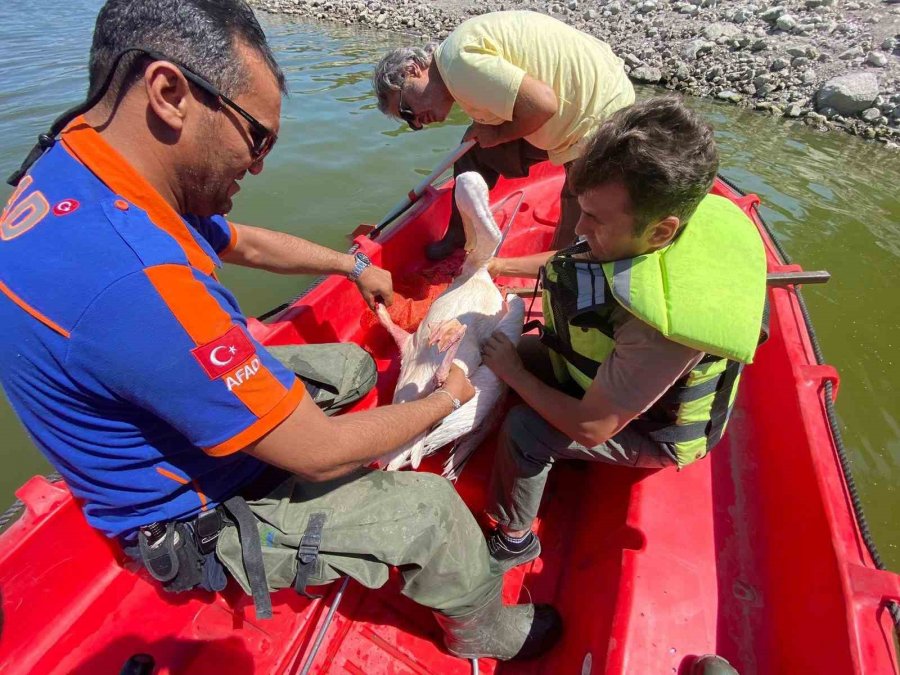 Aksaray'da gölette balık ağı ve kancalarına takılarak mahsur kalan pelikan, İl Afet Acil Durum (AFAD) ekipleri tarafından kurtarıldı.