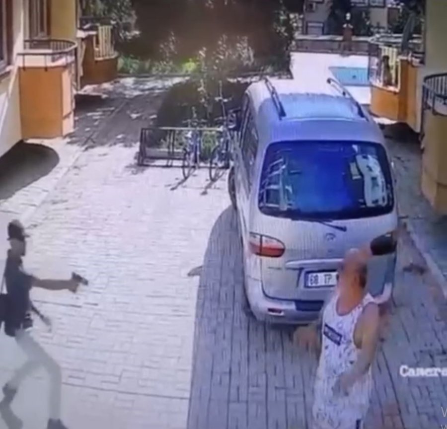 Antalya'nın Alanya ilçesinde kiracı, site içerisinde güneş gözlüklü ve şapkalı bir kişi tarafından ayağından tabancayla vuruldu. Olay anı ise güvenlik kamerası tarafından saniye saniye kaydedildi.
