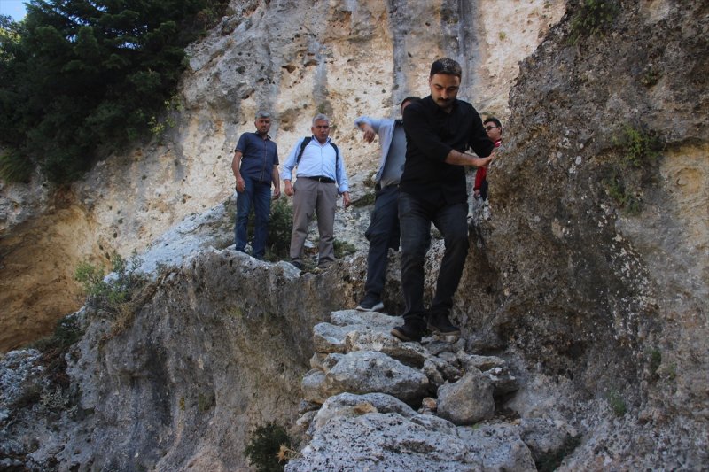 Gülnar Kaymakamı Mustafa Ayvat, Gülnar Belediye Başkanı Alpaslan Ünüvar ve beraberindekiler İshaklar Mahallesi'ndeki Güldürgü Kanyonu'nda incelemede bulundu.