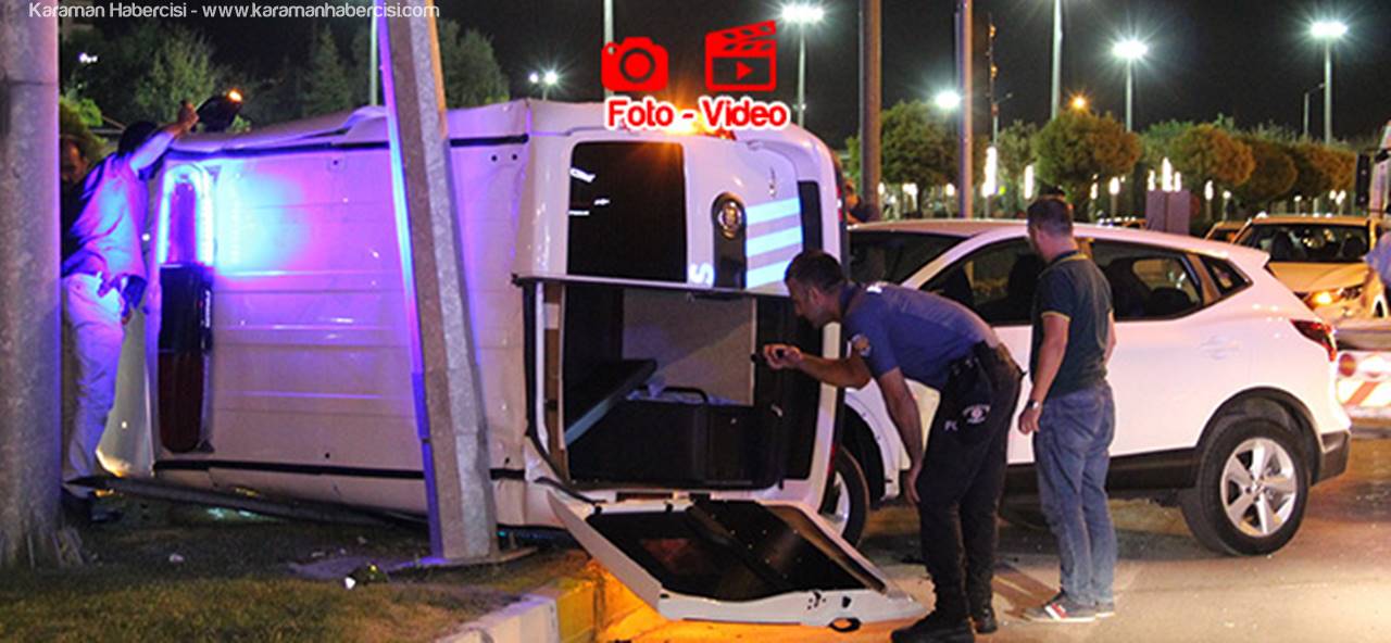 Karaman’da Trafik Kazasında Polis Otosu Yan Yattı