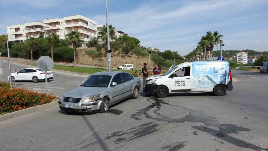 Kaza, Hasan Ali Yücel Caddesi'nde meydana geldi. Alınan bilgiye göre, Manavgat Anaokulu istikametinden gelip çevreyolu istikametine gitmekte olan Mustafa Koyak'ın kullandığı 07 ARY 465 plakalı otomobil ile Berat Boğazoğlu'nun kullandığı 07 LL 356 plakalı hafif ticari araç çarpıştı. Kazada yaralanan otomobil sürücüsü Mustafa Koyak kendi imkanlarıyla hastaneye giderken, sağlık durumunun iyi olduğu bildirildi.